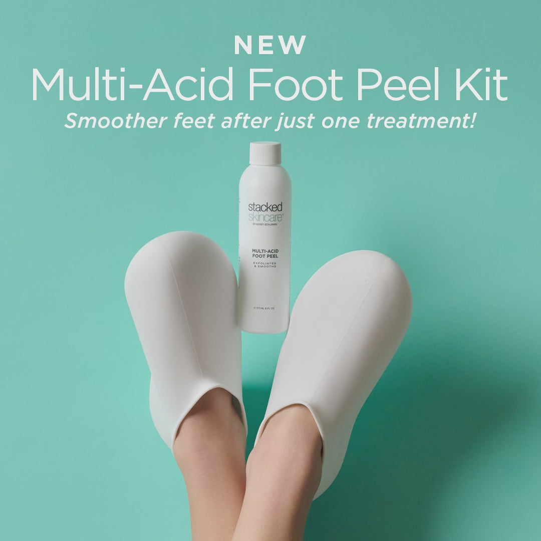 Eco-friendly, convenient, and luxurious, the first sustainable foot peel refill is here. No more single use plastic bags thrown away. Simply reorder our Muti-Acid Foot Peel Refill as needed and continue suggested monthly use with your reusable StackedSkincare® silicon booties.