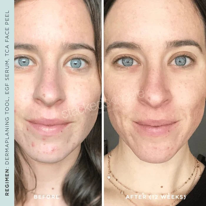 30 ml TCA Multi-Acid Face Peel: A gentle, rinse-free chemical exfoliation that reduces hyperpigmentation, smooths fine lines, unclogs pores, and alleviates dryness using a combination of lactic, glycolic, TCA, phytic, and salicylic acid.